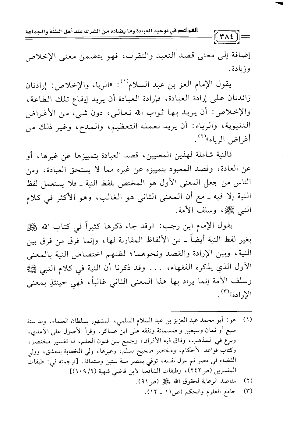 (¬١) هو: أبو محمد عبد العزيز بن عبد السلام السلمي، المشهور بسلطان العلماء، ولد سنة سبع أو ثمان وسبعين وخمسمائة وتفقه على ابن عساكر، وقرأ الأصول على الآمدي، وبرع في المذهب، وفاق فيه الأقران، وجمع بين فنون العلم، له تفسير مختصر، وكتاب قواعد الأحكام، ومختصر صحيح مسلم، وغيرها، ولي الخطابة بدمشق، وولي القضاء في مصر ثم عزل نفسه، توفي بمصر سنة ستين وستمائة. [ترجمته في: طبقات المفسرين (ص ٢٤٢)، وطبقات الشافعية لابن قاضي شهبة (٢/ ١٠٩)].