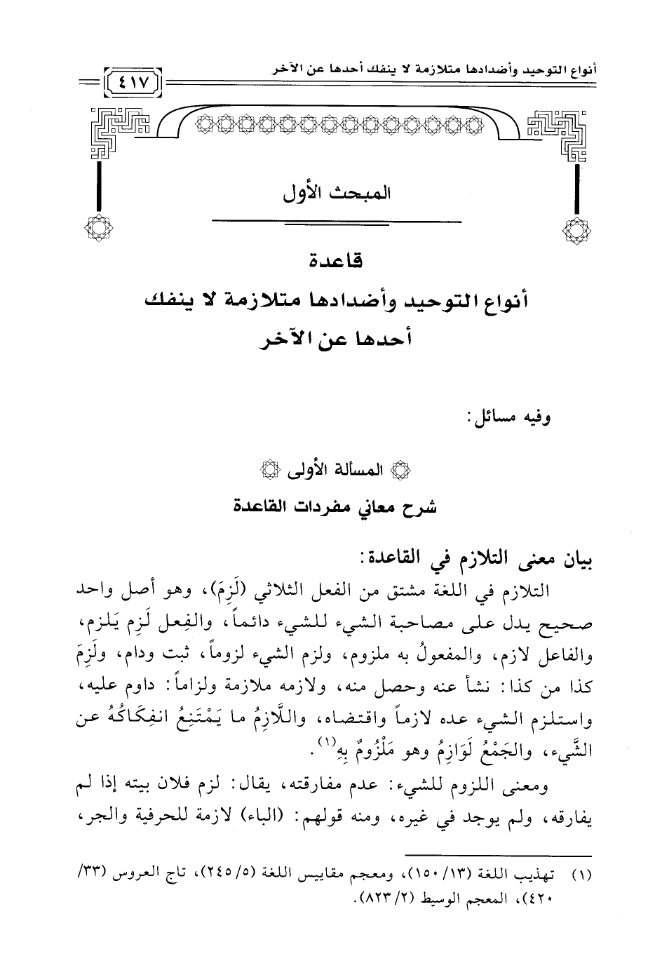 * المسألة الأولى * شرح معاني مفردات القاعدة