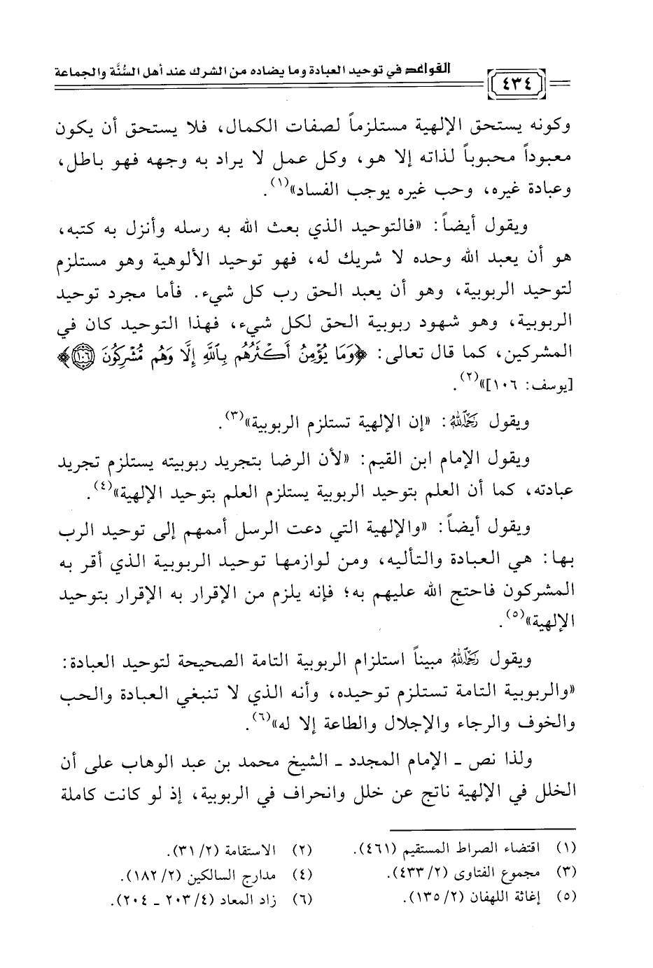 ولذا نص -الإمام المجدد- الشيخ محمد بن عبد الوهاب على أن الخلل في الإلهية ناتج عن خلل وانحراف في الربوبية، إذ لو كانت كاملة