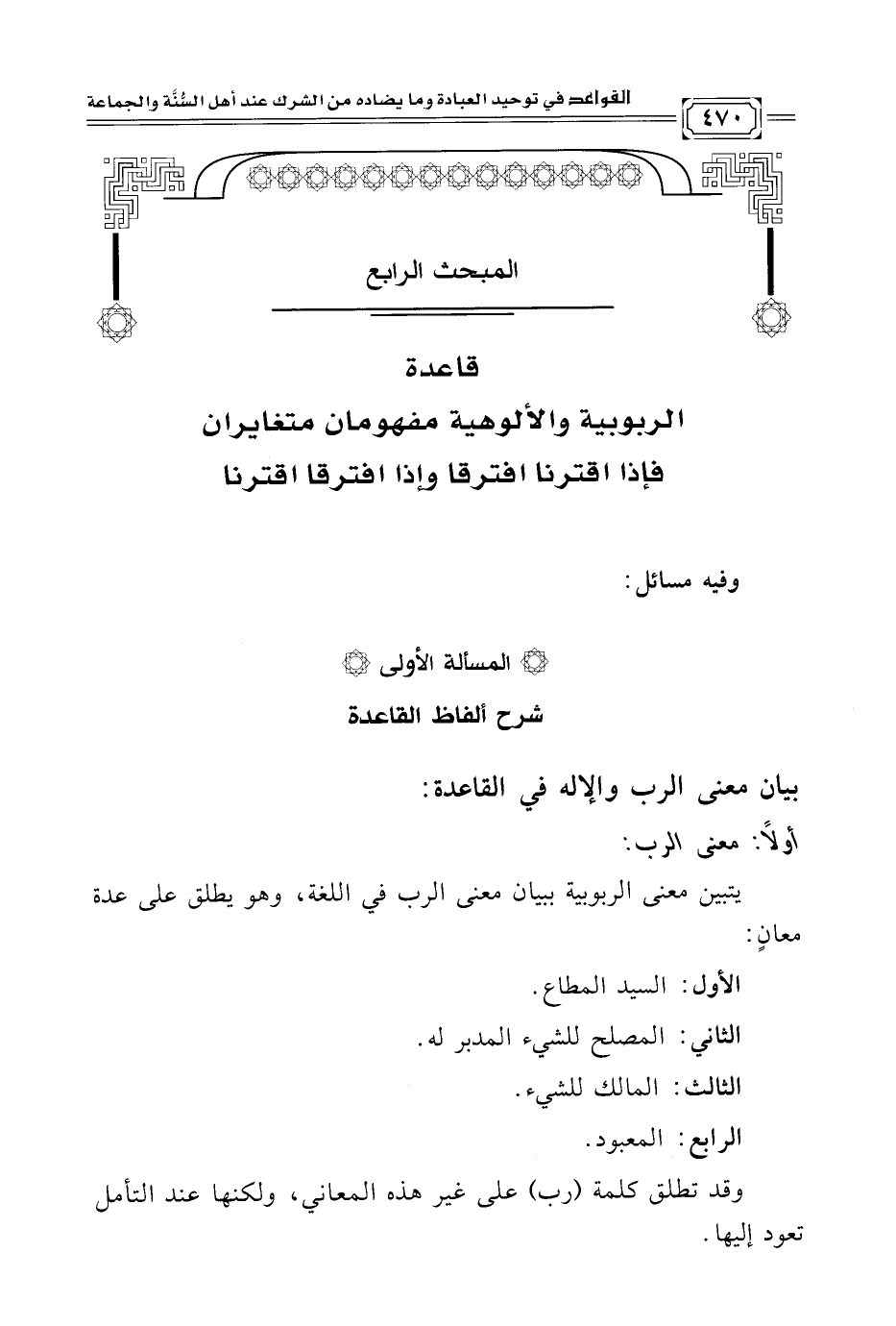 قاعدة الربوبية والألوهية مفهومان متغايران فإذا اقترنا افترقا وإذا افترقا اقترنا