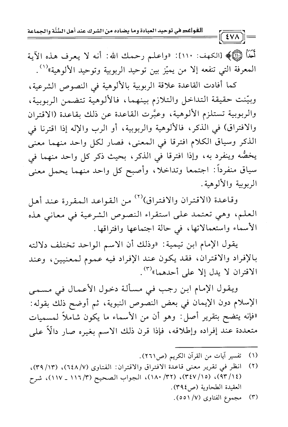 (¬٢) انظر في تقرير معنى قاعدة الافتراق والاقتران: الفتاوى (٧/ ٦٤٨)، (١٣/ ٣٩)، (١٤/ ٩٣)، (١٥/ ٣٤٧)، (٣٢/ ١٨٠)، الجواب الصحيح (٣/ ١١٦ - ١١٧)، شرح العقيدة الطحاوية (ص ٣٩٤).