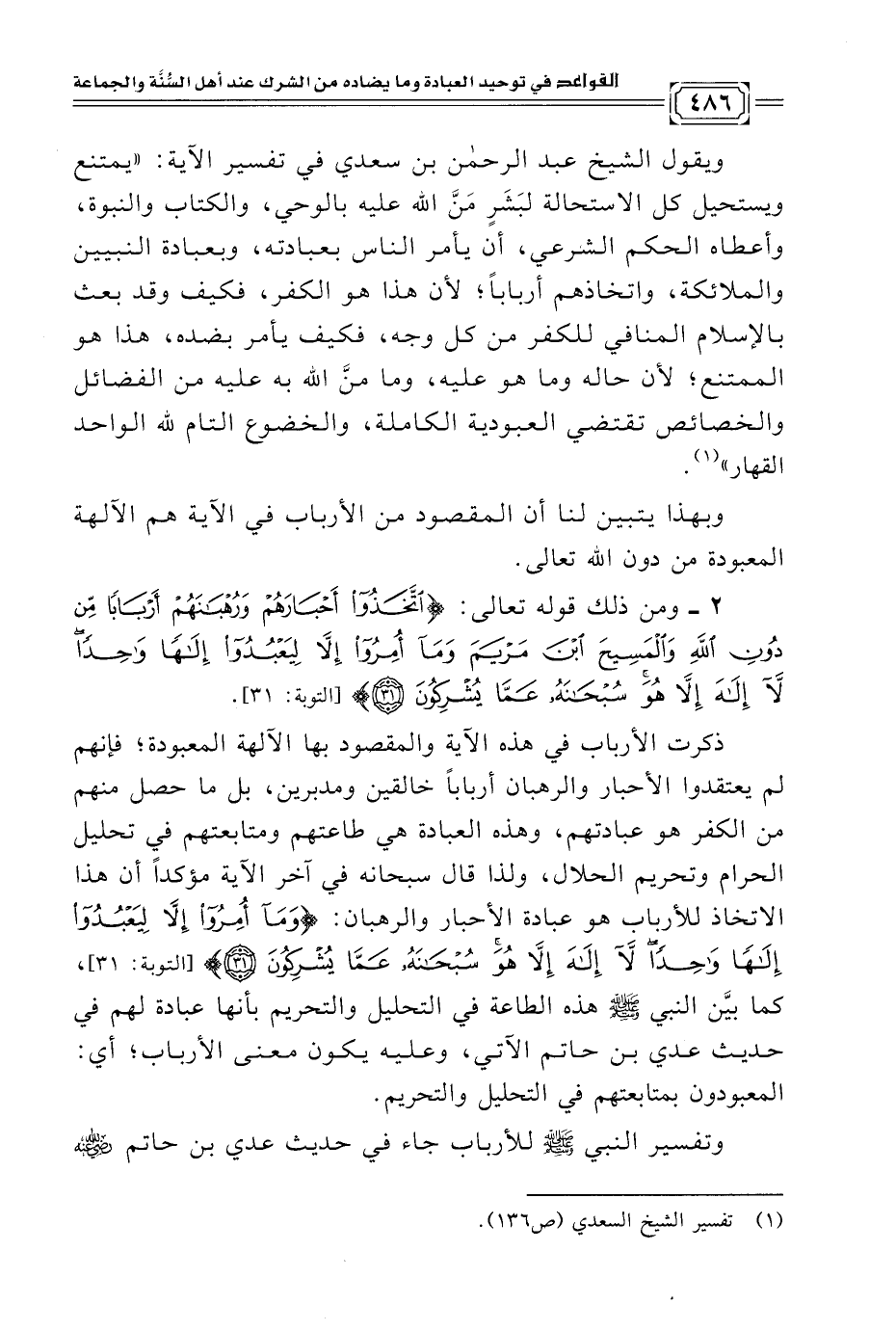 (¬١) تفسير الشيخ السعدي (ص ١٣٦).