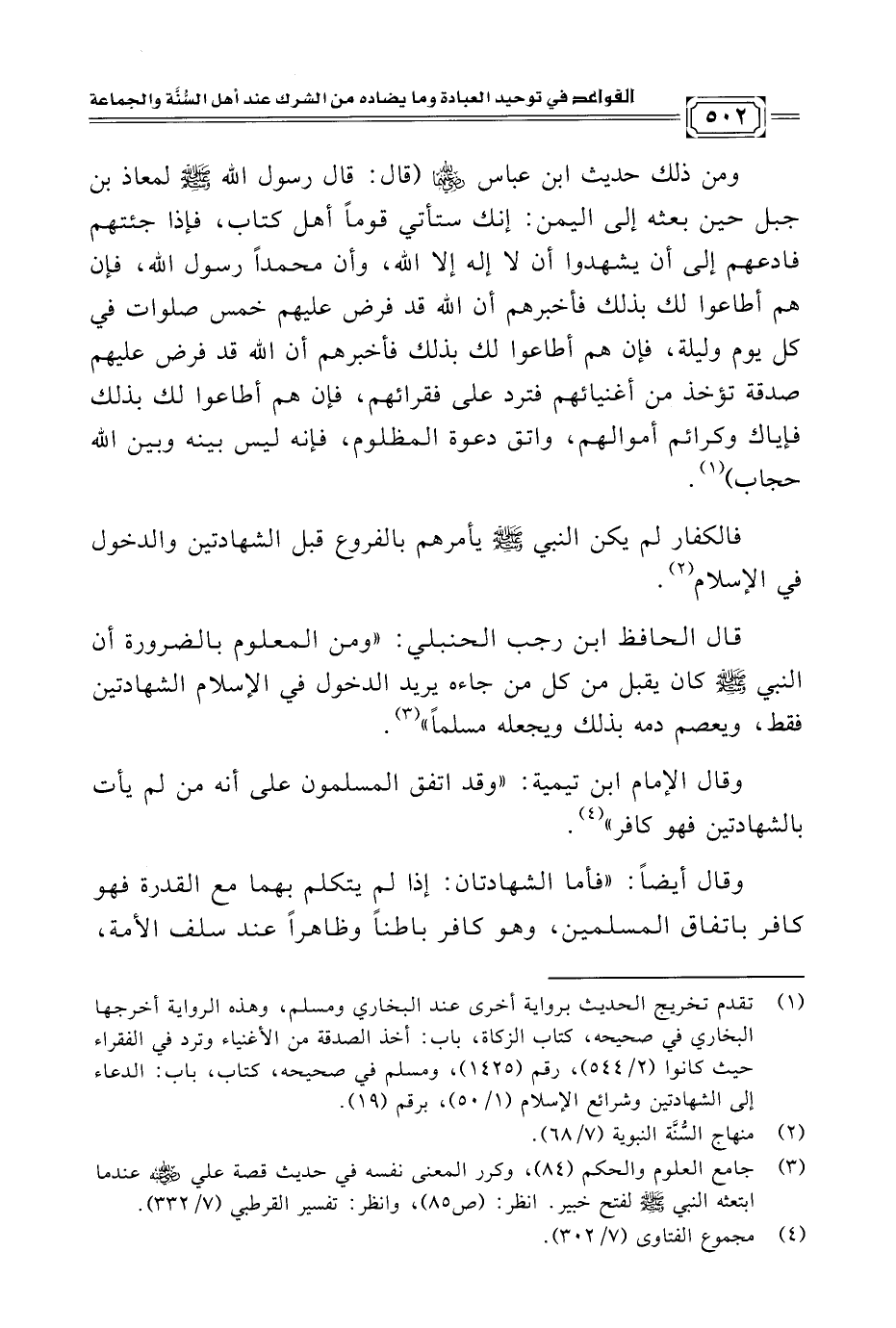 (¬٣) جامع العلوم والحكم (٨٤)، وكرر المعنى نفسه في حديث قصة علي - رضي الله عنه - عندما ابتعثه النبي - صلى الله عليه وسلم - لفتح خبير. انظر: (ص ٨٥)، وانظر: تفسير القرطبي (٧/ ٣٣٢).