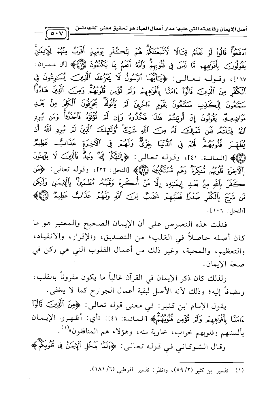 ولذلك كان ذكر الإيمان في القرآن غالبًا ما يكون مقرونًا بالقلب، ومضافًا إليه؛ وذلك لأنه الأصل لبقية أعمال الجوارح كما لا يخفى.