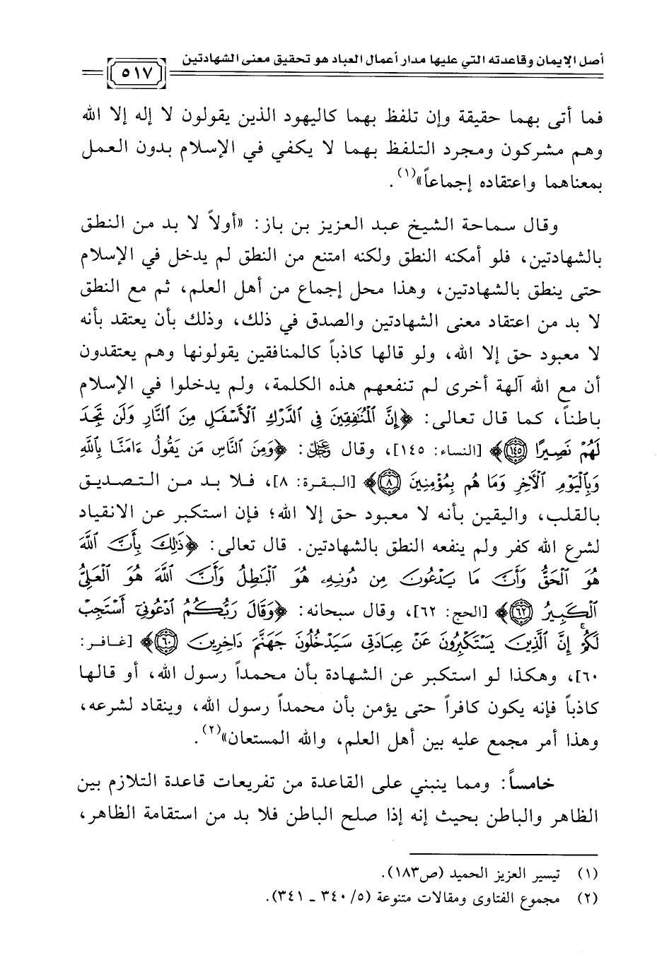 (¬٢) مجموع الفتاوى ومقالات متنوعة (٥/ ٣٤٠ - ٣٤١).