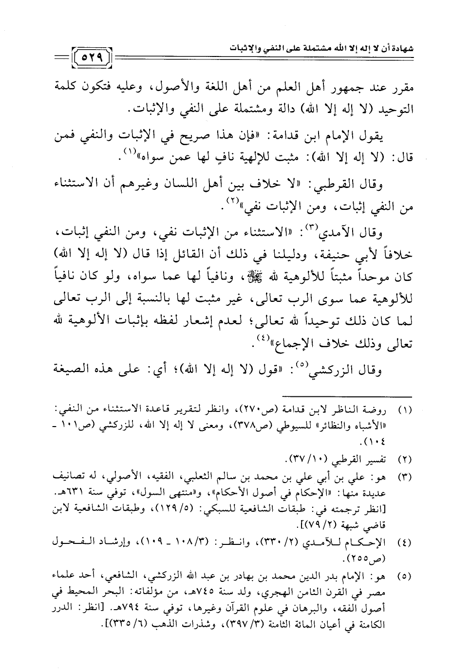 (¬٥) هو: الإمام بدر الدين محمد بن بهادر بن عبد اللّه الزركشي، الشافعي، أحد علماء مصر في القرن الثامن الهجري، ولد سنة ٧٤٥ هـ، من مؤلفاته: البحر المحيط في أصول الفقه، والبرهان في علوم القرآن وغيرها، توفي سنة ٧٩٤ هـ. [انظر: الدرر الكامنة في أعيان المائة الثامنة (٣/ ٣٩٧)، وشذرات الذهب (٦/ ٣٣٥)].