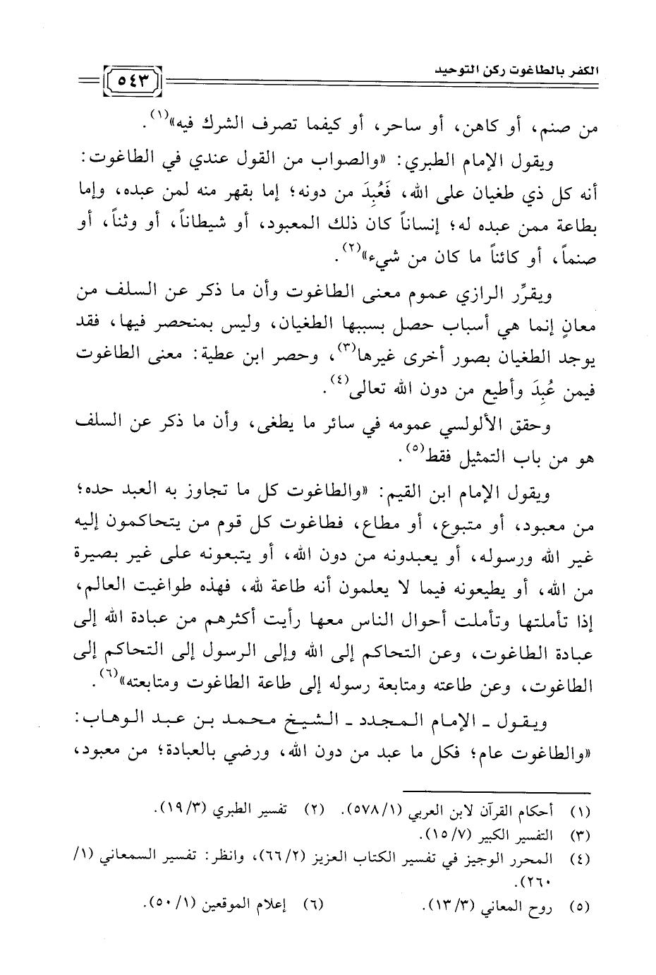 ويقرِّر الرازي عموم معنى الطاغوت وأن ما ذكر عن السلف من معانٍ إنما هي أسباب حصل بسببها الطغيان، وليس بمنحصر فيها، فقد يوجد الطغيان بصور أخرى غيرها (¬٣)، وحصر ابن عطية: معنى الطاغوت فيمن عُبِدَ وأطيع من دون الله تعالى (¬٤).