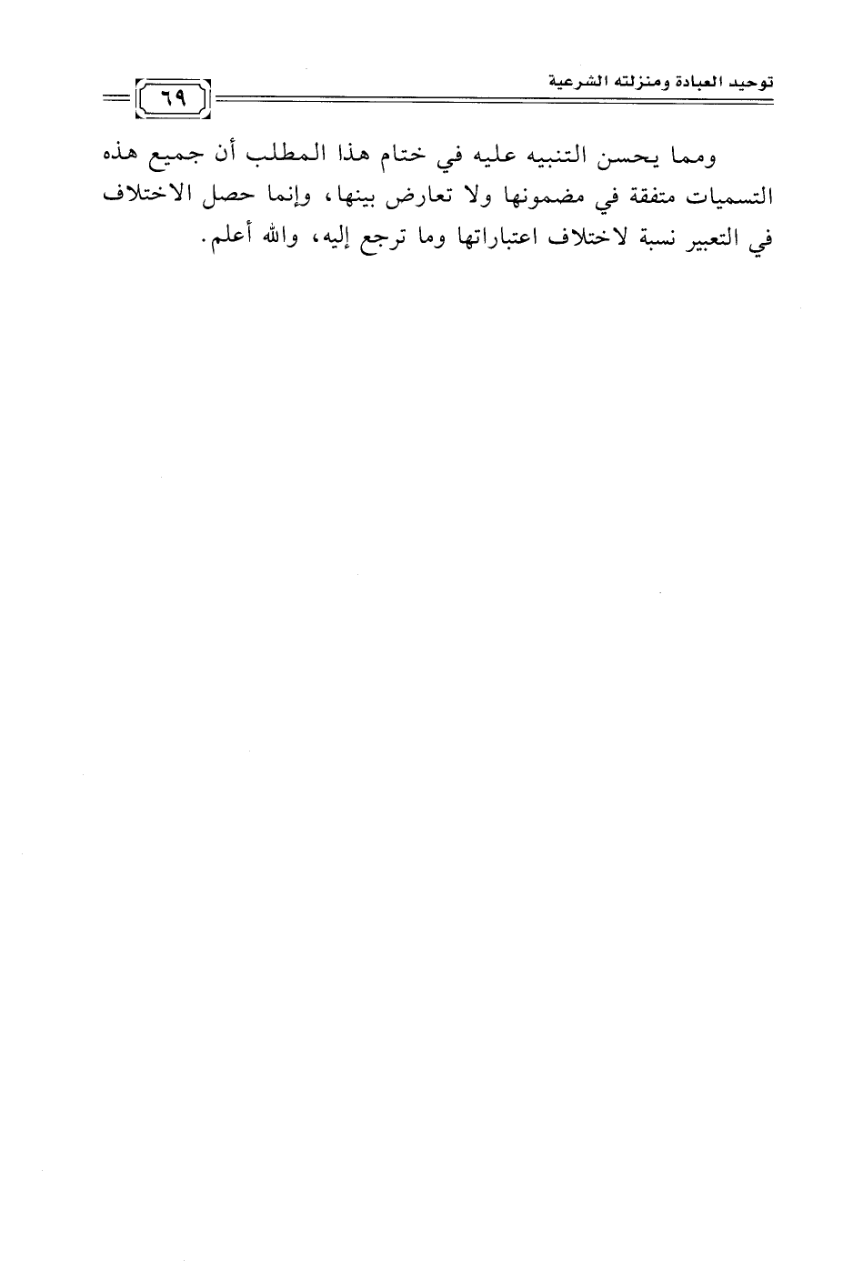 ومما يحسن التنبيه عليه في ختام هذا المطلب أن جميع هذه التسميات متفقة في مضمونها ولا تعارض بينها، وإنما حصل الاختلاف في التعبير نسبة لاختلاف اعتباراتها وما ترجع إليه، واللّه أعلم.
