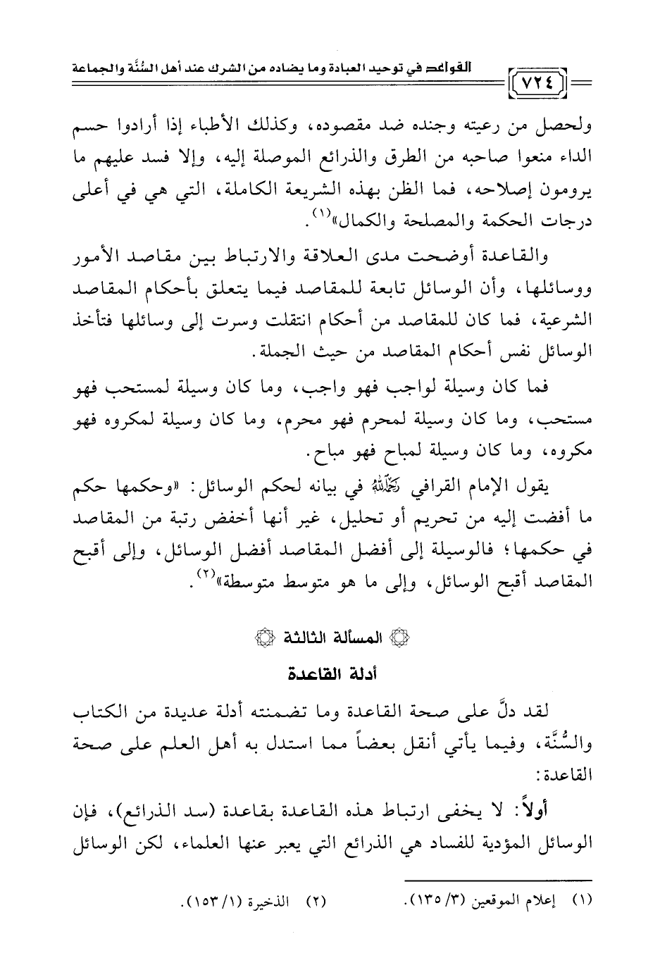 أولًا: لا يخفى ارتباط هذه القاعدة بقاعدة (سد الذرائع)، فإن الوسائل المؤدية للفساد هي الذرائع التي يعبر عنها العلماء، لكن الوسائل