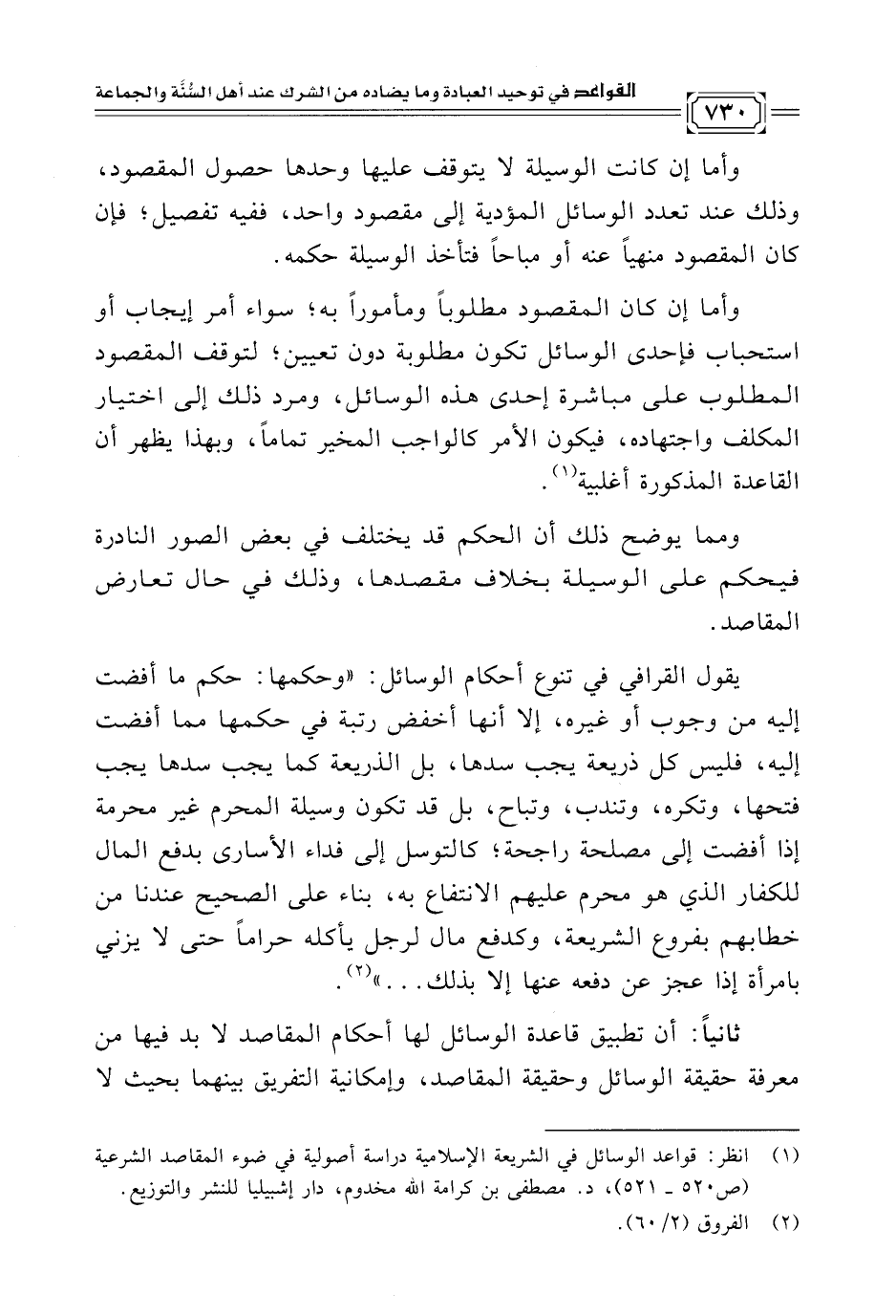 (¬١) انظر: قواعد الوسائل في الشريعة الإسلامية دراسة أصولية في ضوء المقاصد الشرعية (ص ٥٢٠ - ٥٢١)، د. مصطفى بن كرامة الله مخدوم، دار إشبيليا للنشر والتوزيع.