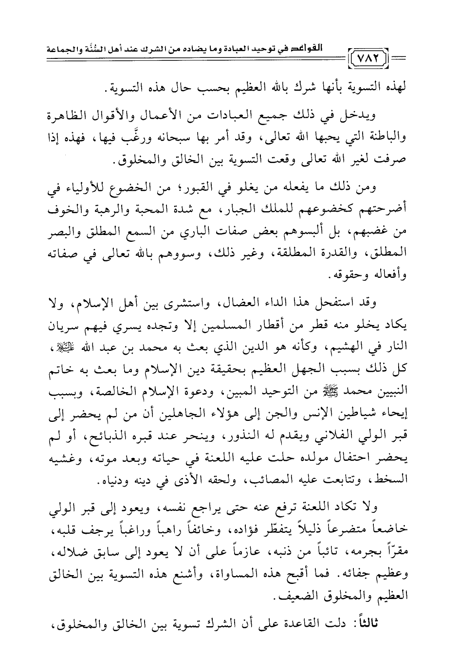ثالثًا: دلت القاعدة على أن الشرك تسوية بين الخالق والمخلوق،