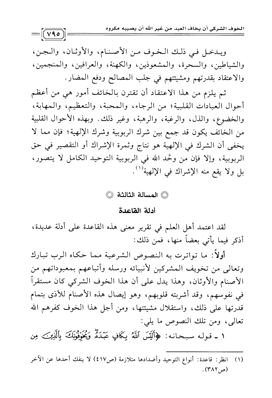 (¬١) انظر: قاعدة: أنواع التوحيد وأضدادها متلازمة (ص ٤١٧) لا ينفك أحدها عن الآخر (ص ٣٨٢).