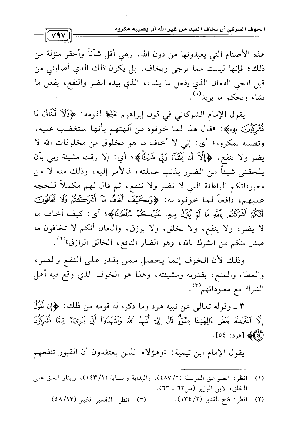 وذلك لأن الخوف إنما يحصل ممن يقدر على النفع والضر، والعطاء والمنع، بقدرته ومشيئته، وهذا هو الخوف الذي وقع فيه أهل الشرك مع معبوداتهم (¬٣).