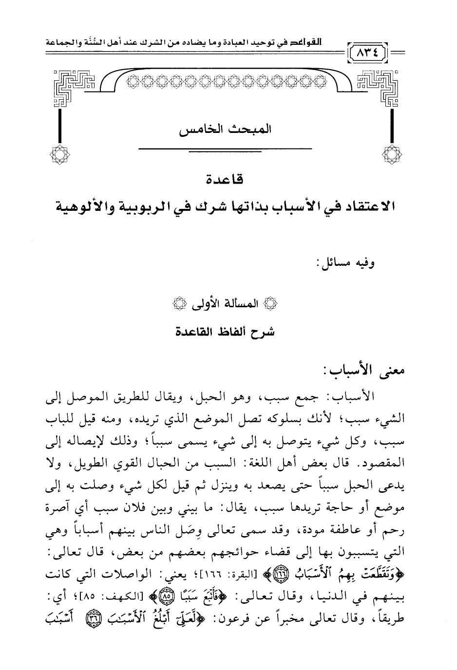 قاعدة الاعتقاد في الأسباب بذاتها شرك في الربوبية والألوهية