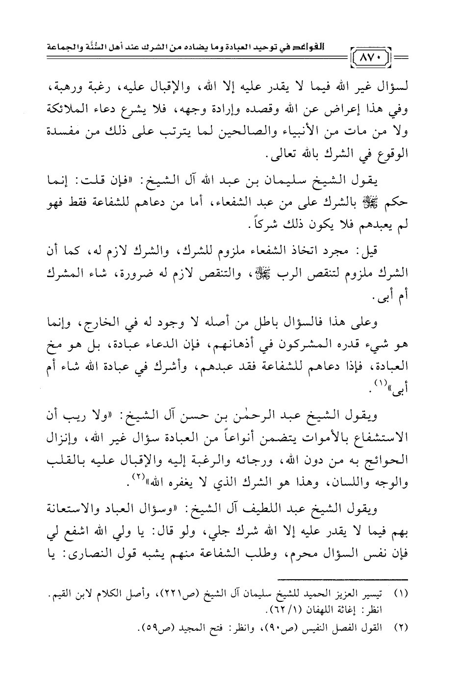 (¬٢) القول الفصل النفيس (ص ٩٠)، وانظر: فتح المجيد (ص ٥٩).