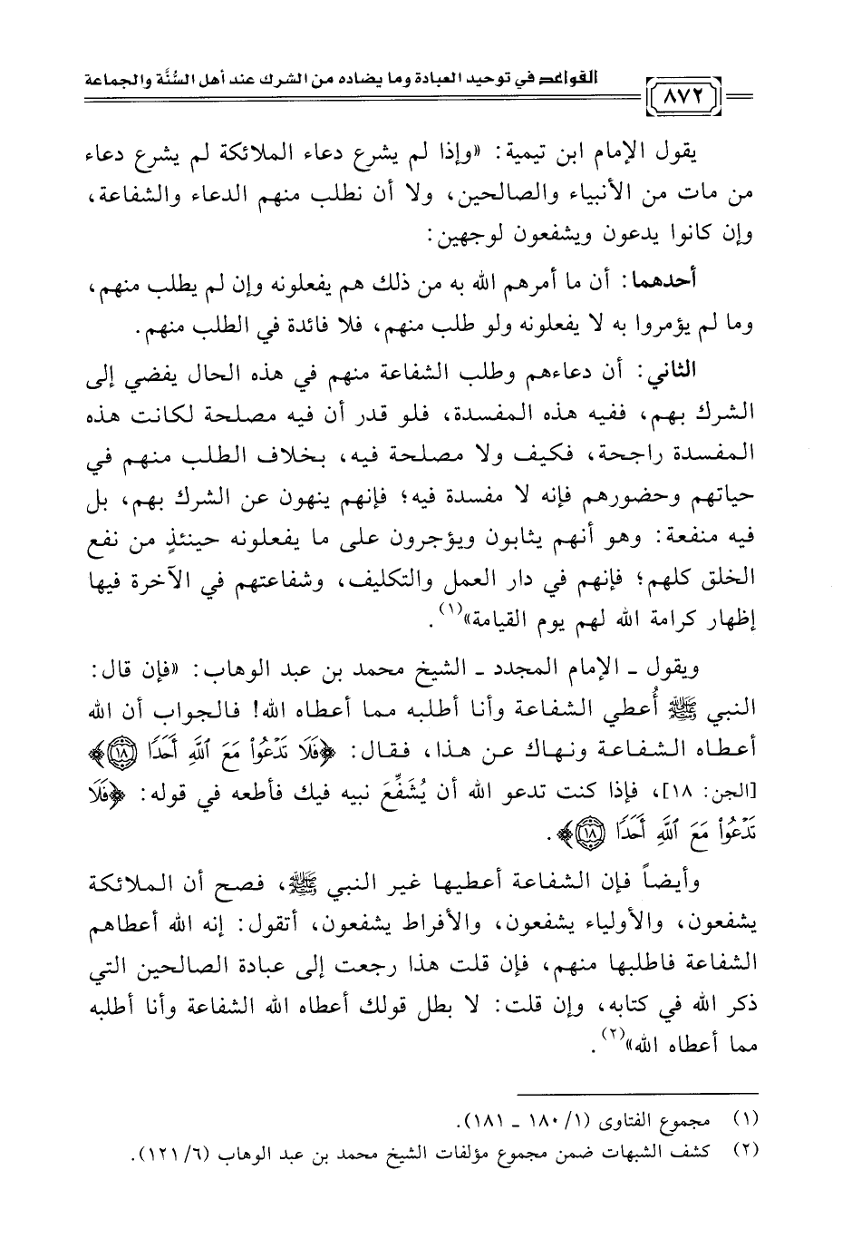 (¬٢) كشف الشبهات ضمن مجموع مؤلفات الشيخ محمد بن عبد الوهاب (٦/ ١٢١).