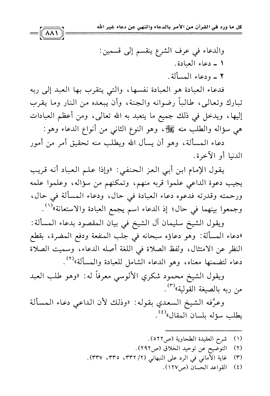 ويقول الشيخ محمود شكري الألوسي معرفًا له: "وهو طلب العبد من ربه بالصيغة القولية" (¬٣).