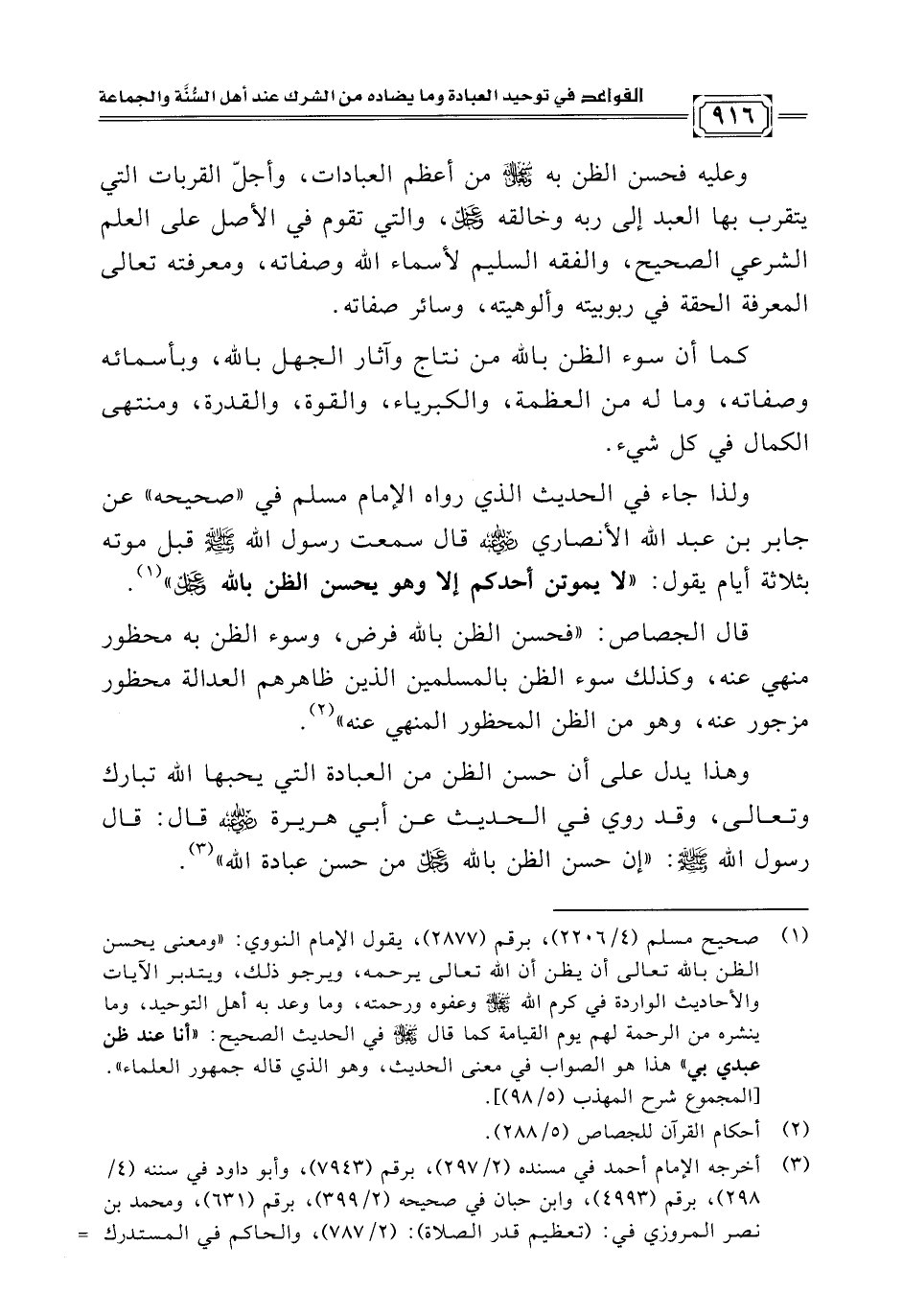 ولذا جاء في الحديث الذي رواه الإمام مسلم في "صحيحه" عن جابر بن عبد الله الأنصاري -رضي الله عنه- قال سمعت رسول الله -صلى الله عليه وسلم- قبل موته بثلاثة أيام يقول: "لا يموتن أحدكم إلا وهو يحسن الظن بالله عز وجل" (¬١).