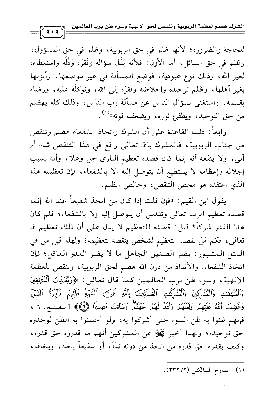 (¬١) مدارج السالكين (٢/ ٢٣٢).