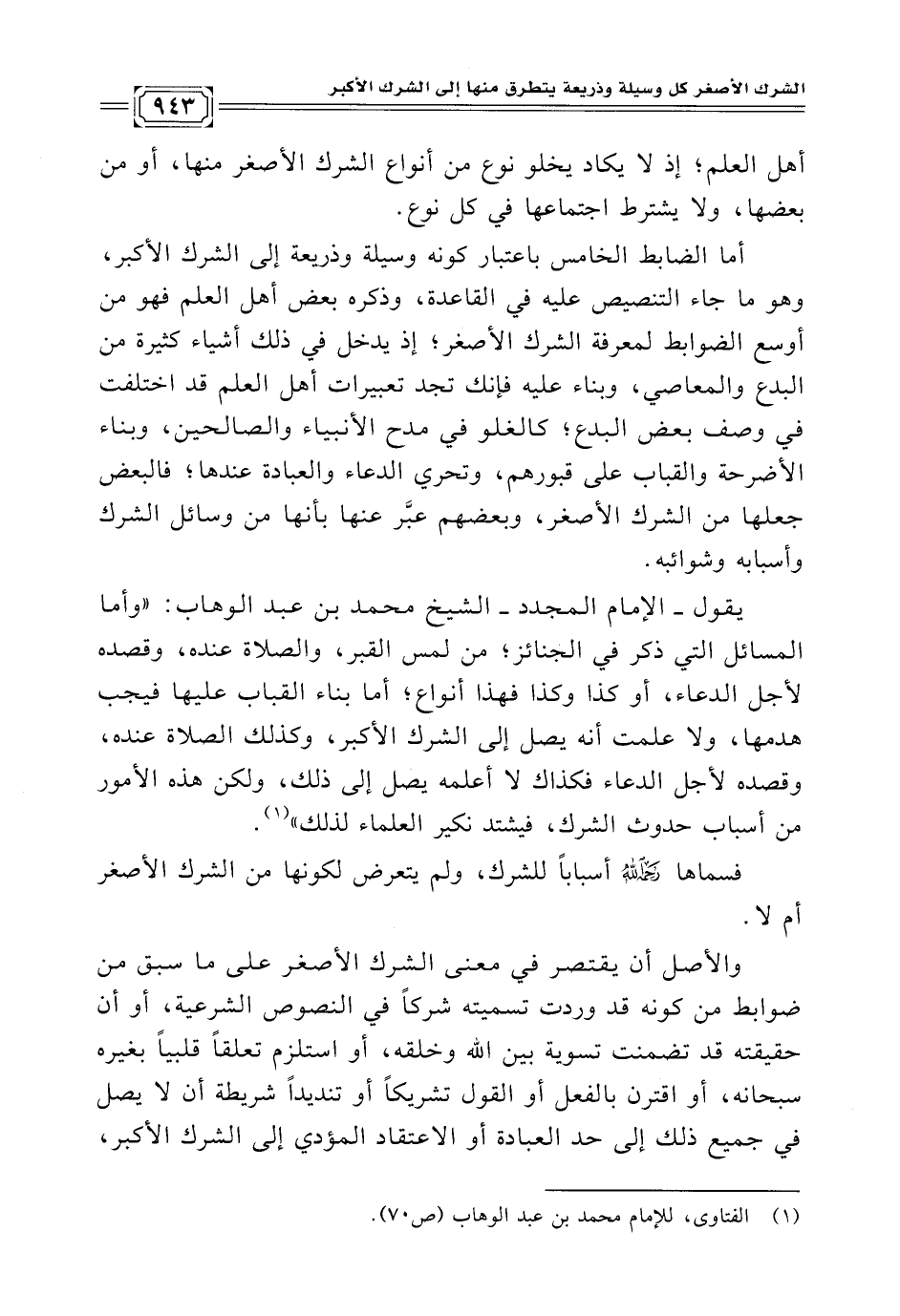 (¬١) الفتاوى، للإمام محمد بن عبد الوهاب (ص ٧٠).