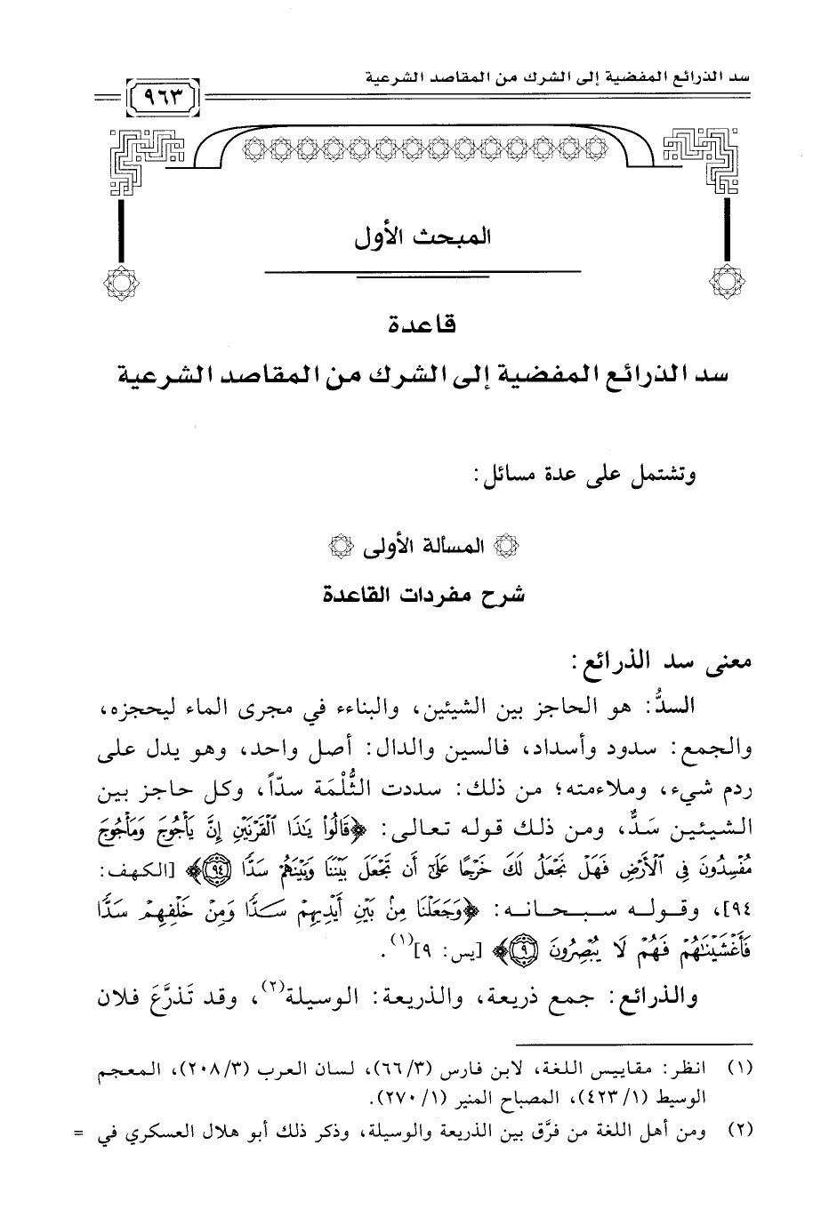قاعدة سد الذرائع المفضية إلى الشرك من المقاصد الشرعية