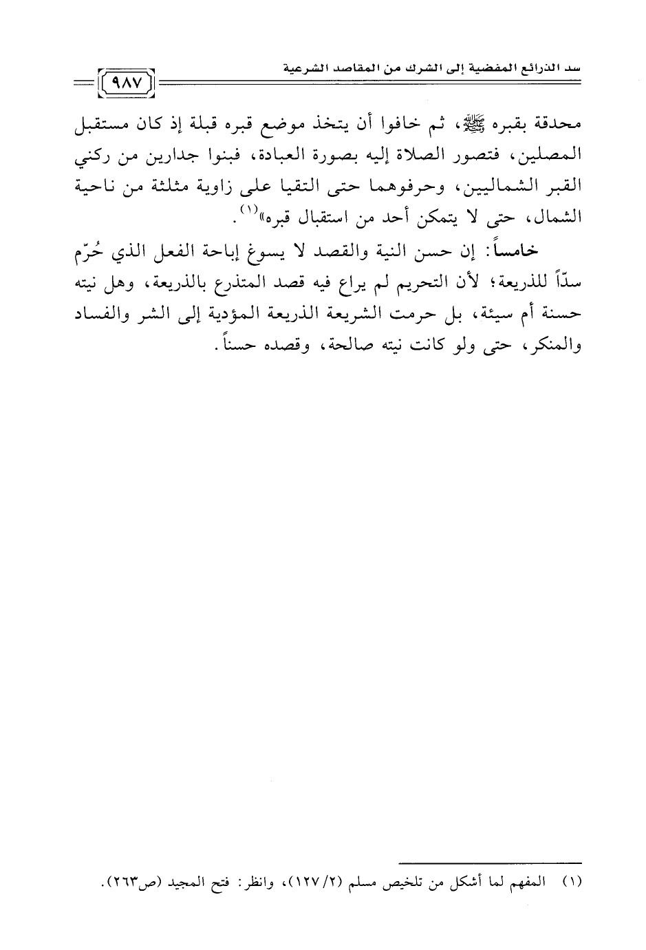 (¬١) المفهم لما أشكل من تلخيص مسلم (٢/ ١٢٧)، وانظر: فتح المجيد (ص ٢٦٣).