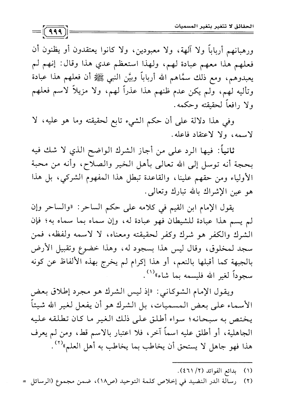 (¬٢) رسالة الدر النضيد في إخلاص كلمة التوحيد (ص ١٨)، ضمن مجموع (الرسائل =