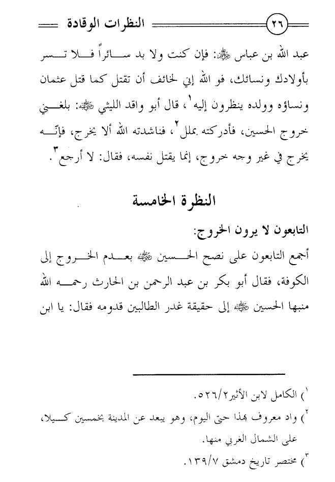 كتاب النظرات الوقادة في خروج الحسين بن علي رضي الله عنه واستشهاده