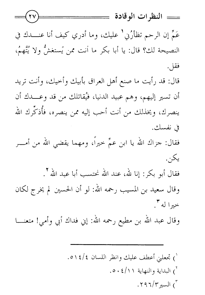 كتاب النظرات الوقادة في خروج الحسين بن علي رضي الله عنه واستشهاده