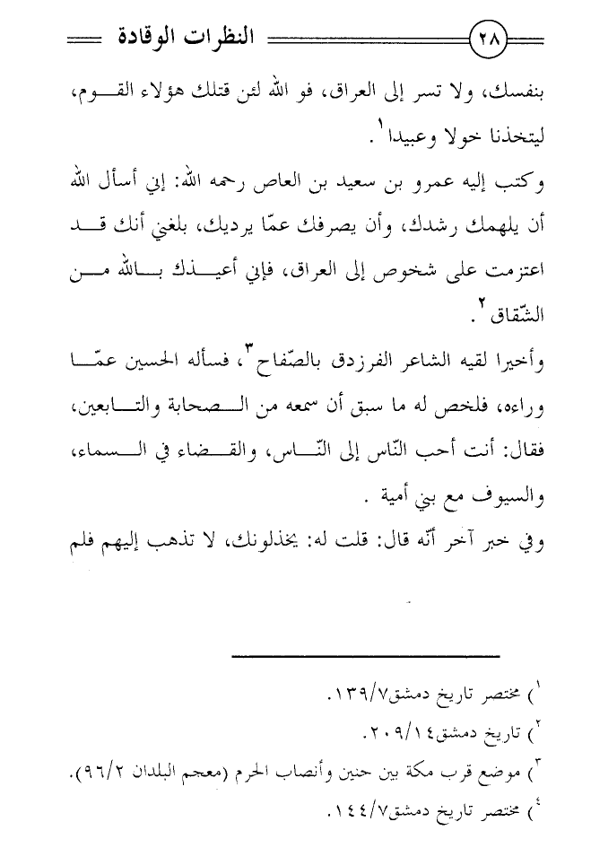 كتاب النظرات الوقادة في خروج الحسين بن علي رضي الله عنه واستشهاده