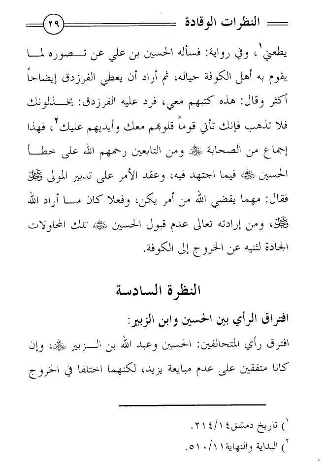 كتاب النظرات الوقادة في خروج الحسين بن علي رضي الله عنه واستشهاده
