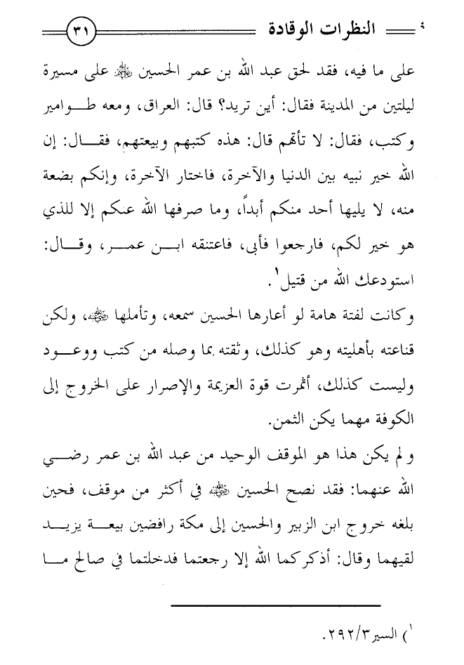 كتاب النظرات الوقادة في خروج الحسين بن علي رضي الله عنه واستشهاده