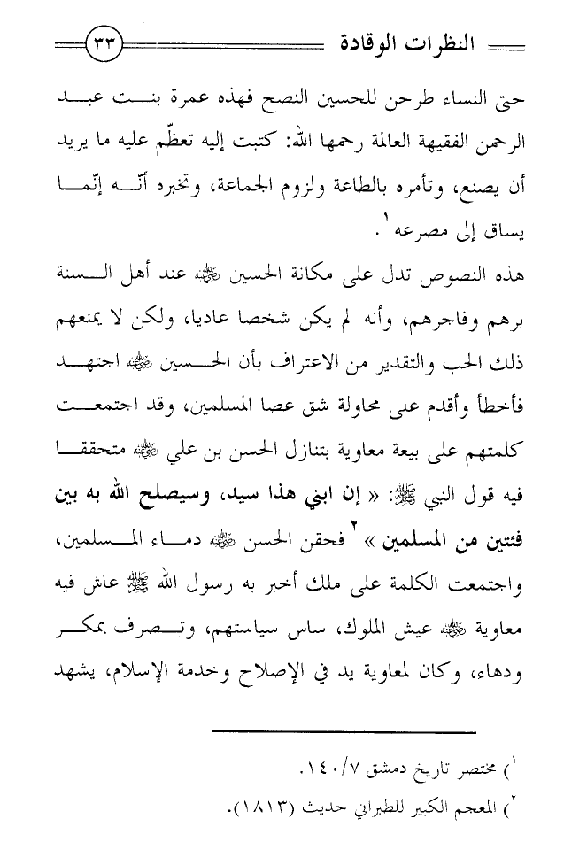 كتاب النظرات الوقادة في خروج الحسين بن علي رضي الله عنه واستشهاده