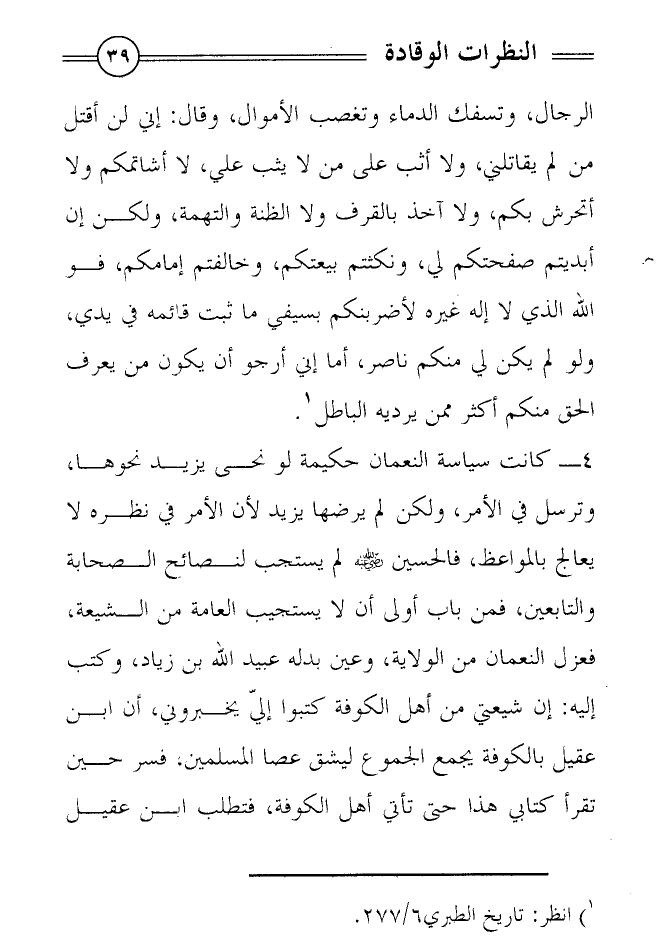 كتاب النظرات الوقادة في خروج الحسين بن علي رضي الله عنه واستشهاده