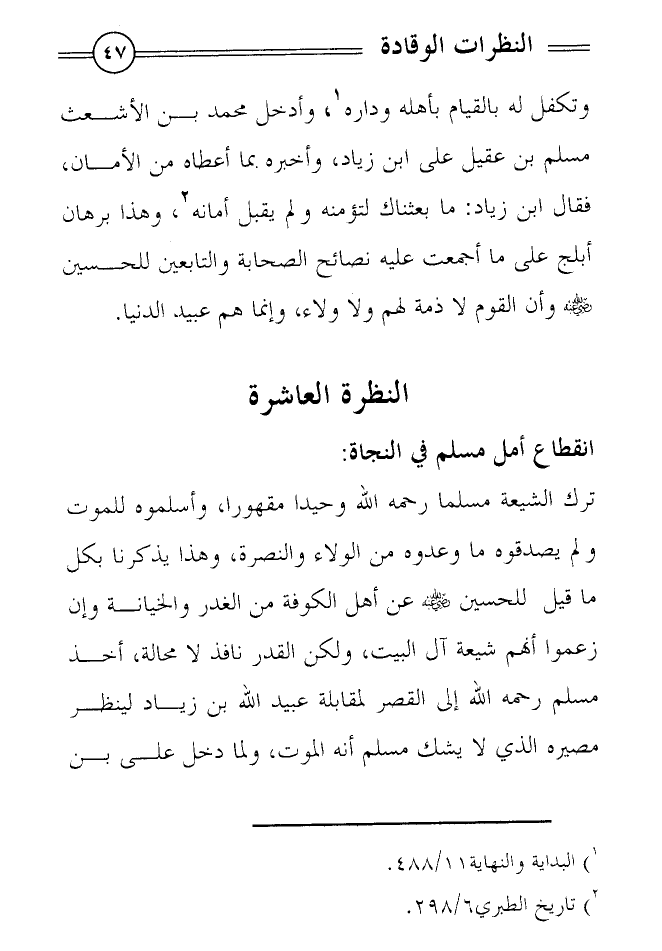 كتاب النظرات الوقادة في خروج الحسين بن علي رضي الله عنه واستشهاده