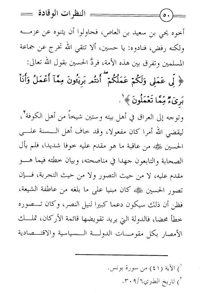 كتاب النظرات الوقادة في خروج الحسين بن علي رضي الله عنه واستشهاده