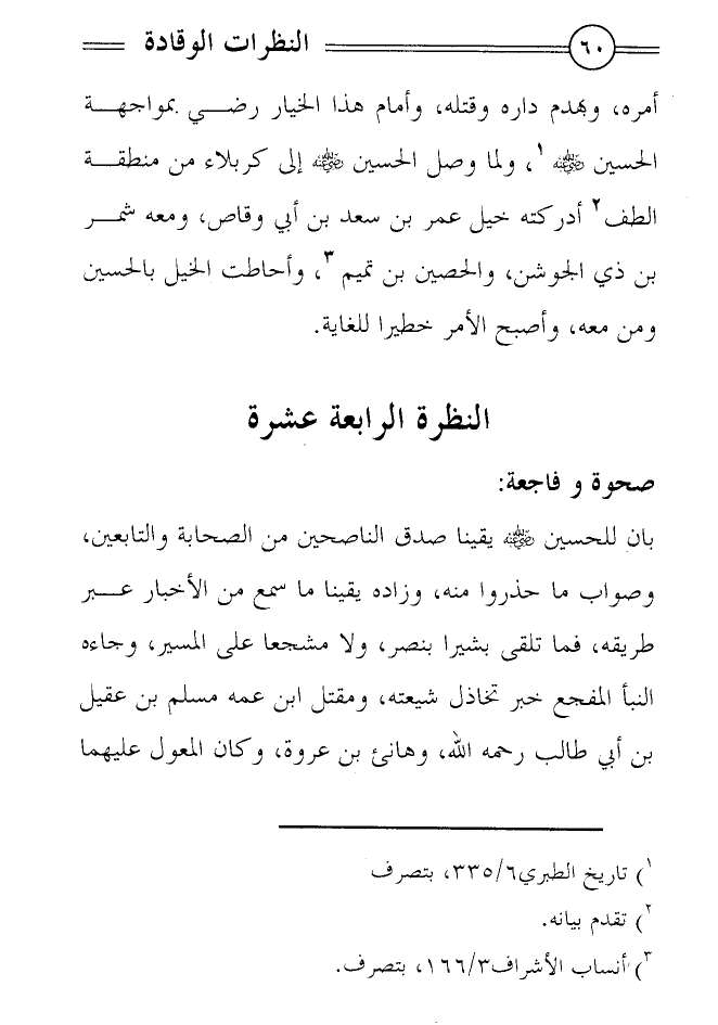 كتاب النظرات الوقادة في خروج الحسين بن علي رضي الله عنه واستشهاده