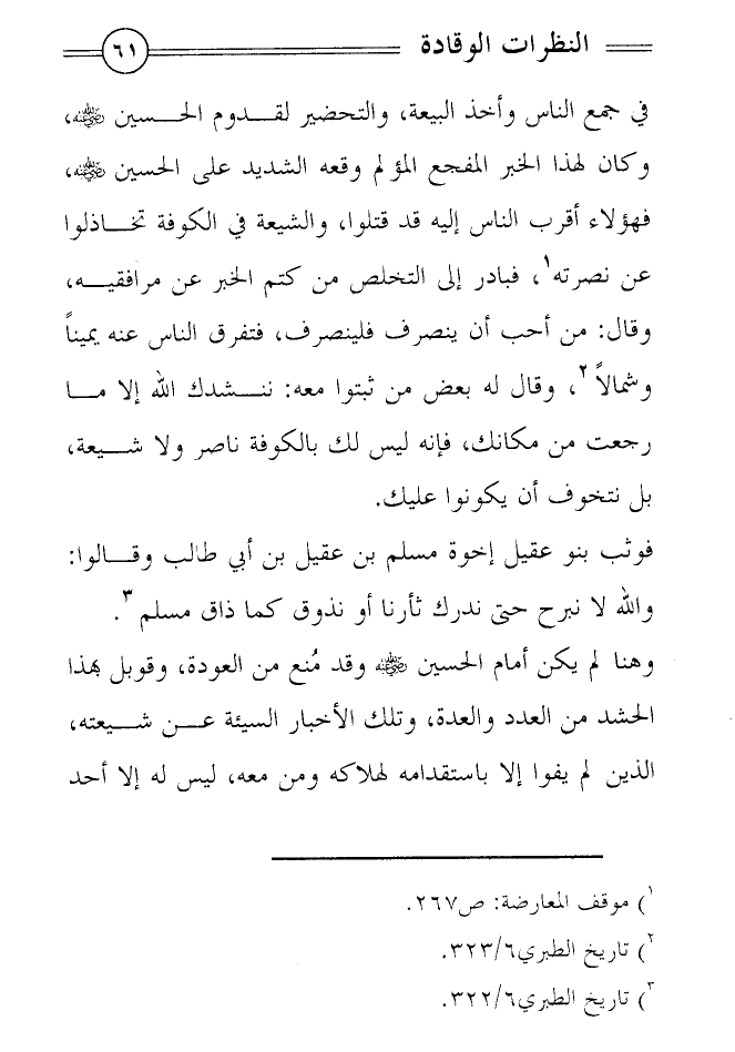 كتاب النظرات الوقادة في خروج الحسين بن علي رضي الله عنه واستشهاده