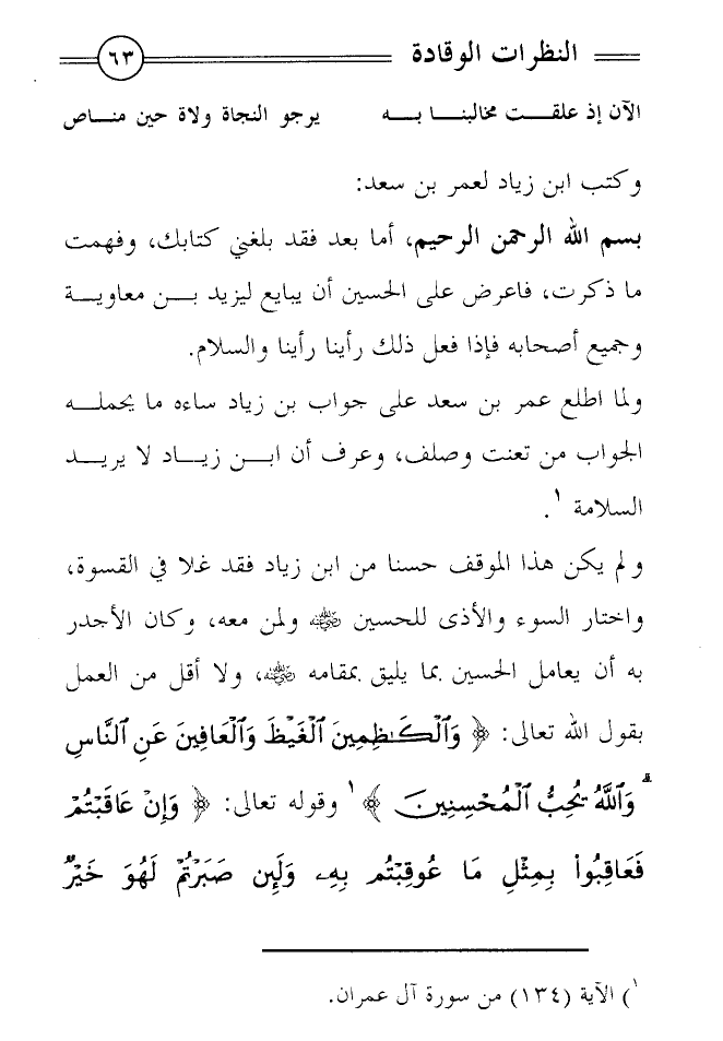 كتاب النظرات الوقادة في خروج الحسين بن علي رضي الله عنه واستشهاده