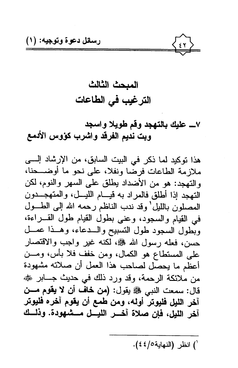 7 - عليك بالتهجد وقم طويلا واسجد ... وبت نديم الفرقد واشرب كؤوس الأدمع
