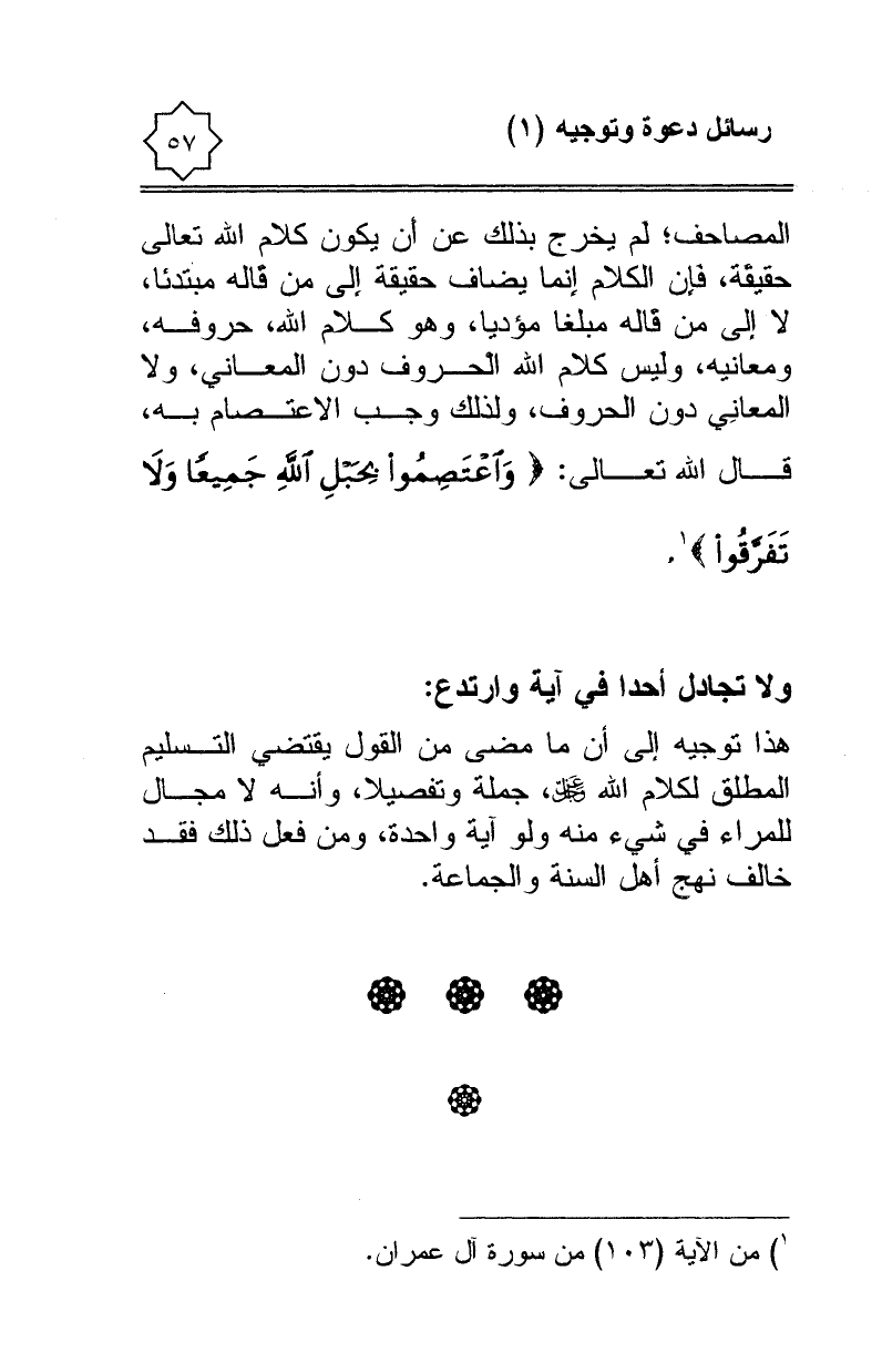 هذا توجيه إلى أن ما مضى من القول يقتضي التسليم المطلق لكلام الله - عز وجل -، جملة وتفصيلا، وأنه لا مجال للمراء في شيء منه ولو آية واحدة، ومن فعل ذلك فقد خالف نهج أهل السنة والجماعة.