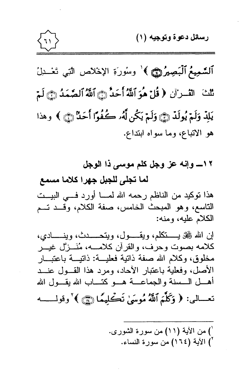 12 - وإنه عز وجل كلم موسى ذا الوجل ... لما تجلى للجبل جهرا كلاما مسمع