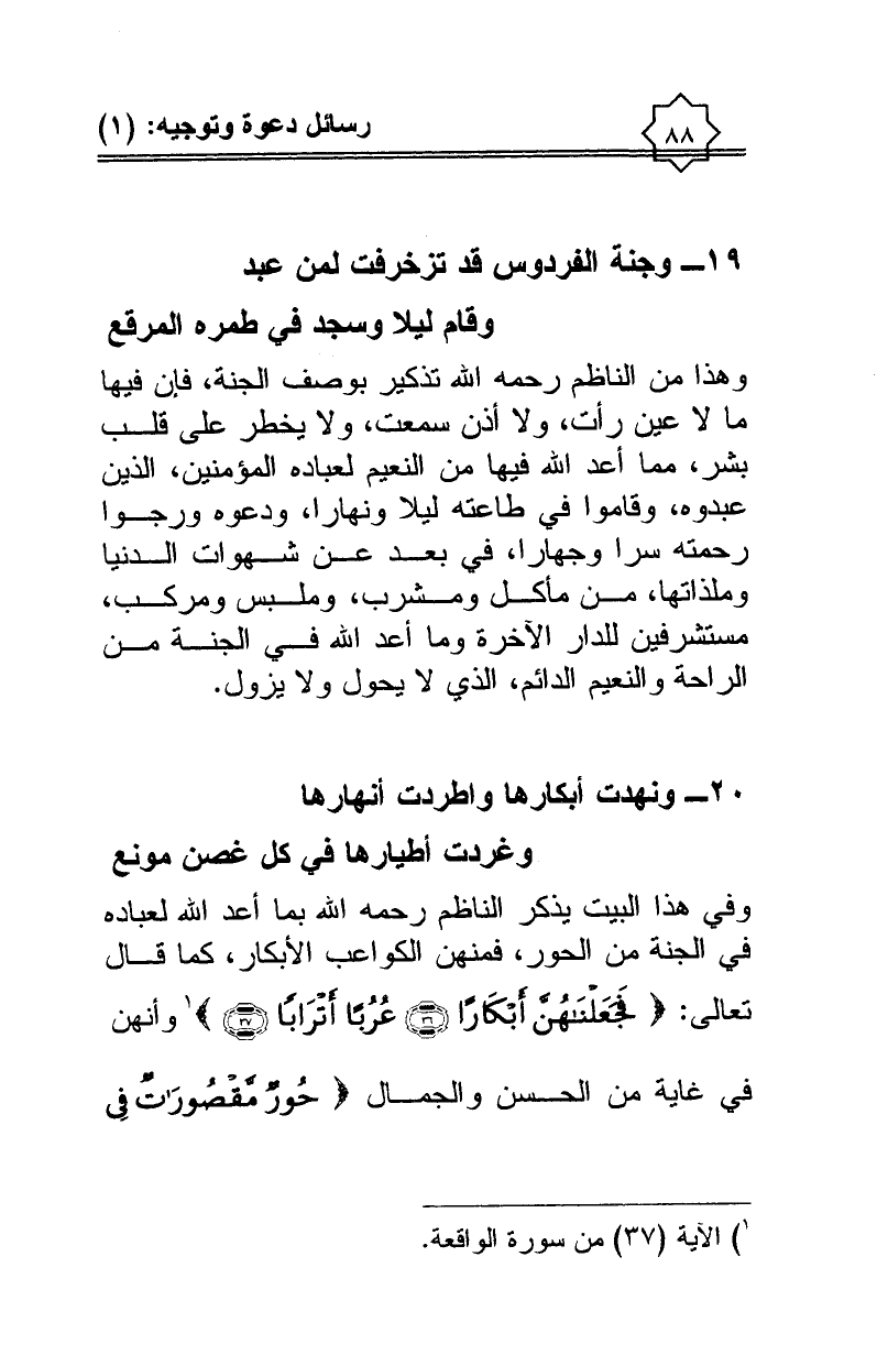 19 - وجنة الفردوس قد تزخرفت لمن عبد ... وقام ليلا وسجد في طمره المرقع