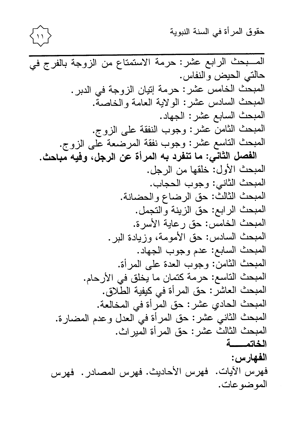 المبحث الثاني عشر: حق المرأة في العدل وعدم المضارة.