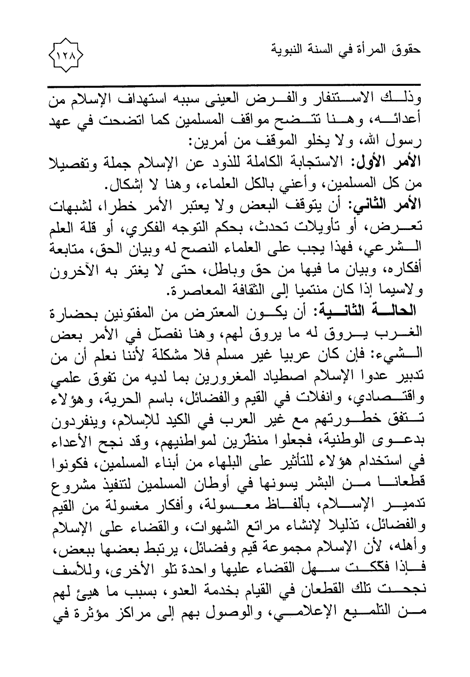 الأمر الأول: الاستجابة الكاملة للذود عن الإسلام جملة وتفصيلا من كل المسلمين، وأعني بالكل العلماء، وهنا لا إشكال.