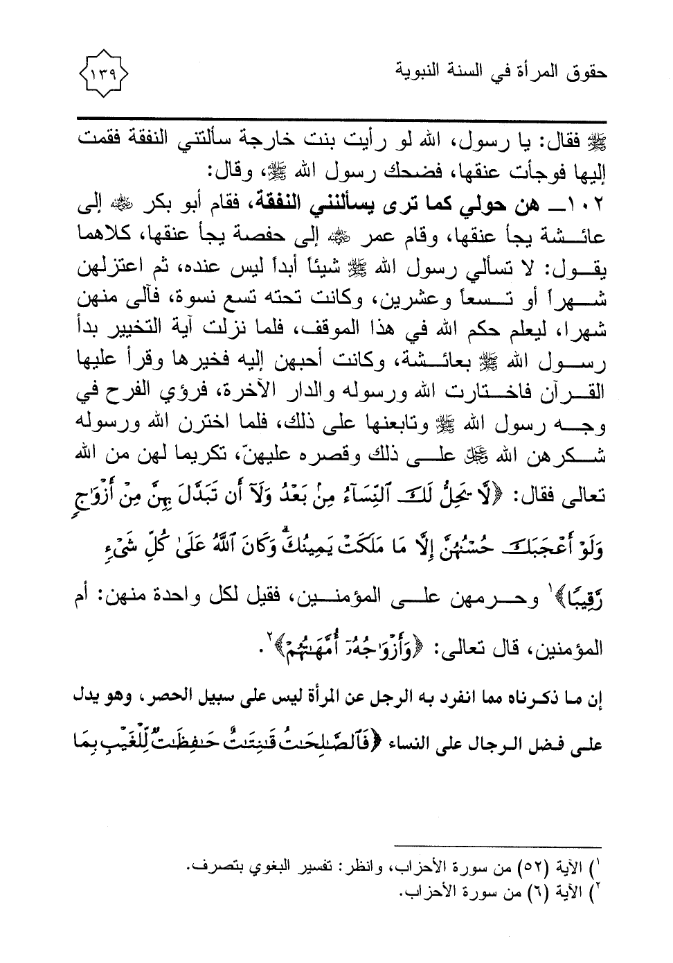 (¬1) الآية (52) من سورة الأحزاب، وانظر: تفسير البغوي بتصرف.