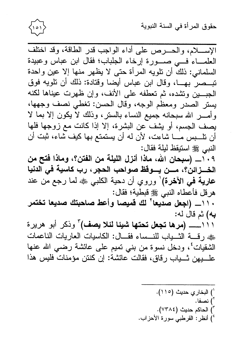 109 - (سبحان الله، ماذا أنزل الليلة من الفتن؟ ، وماذا فتح من الخزائن؟ ، من يوقظ صواحب الحجر، رب كاسية في الدنيا عارية في الآخرة) (¬1) وروي أن دحية الكلبي - رضي الله عنه - لما رجع من عند هرقل فأعطاه النبي - صلى الله عليه وسلم - قبطية؛ فقال: