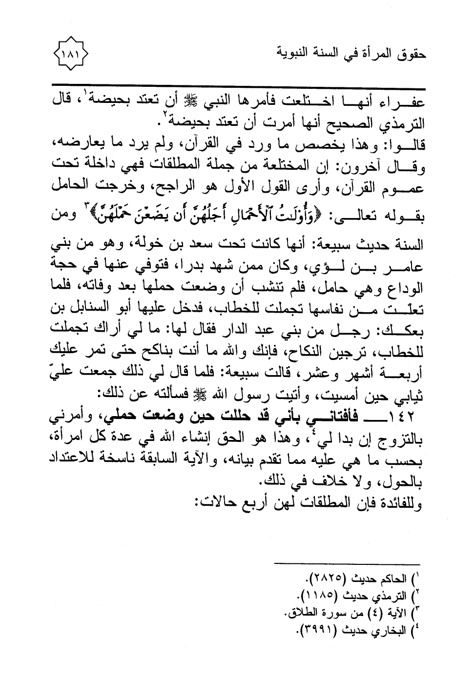 وللفائدة فإن المطلقات لهن أربع حالات: