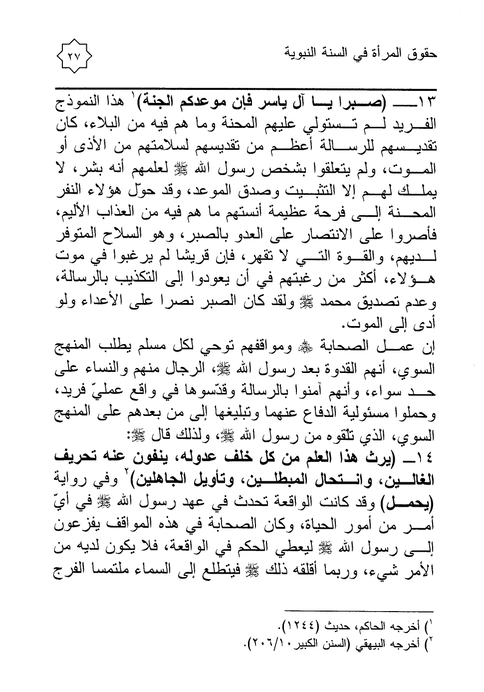 14 - (يرث هذا العلم من كل خلف عدوله، ينفون عنه تحريف الغالين، وانتحال المبطلين، وتأويل الجاهلين) (¬2) وفي رواية "يحمل" وقد كانت الواقعة تحدث في عهد رسول الله - صلى الله عليه وسلم - في أيّ أمر من أمور الحياة، وكان الصحابة في هذه المواقف يفزعون إلى رسول الله - صلى الله عليه وسلم - ليعطي الحكم في الواقعة، فلا يكون لديه من الأمر شيء، وربما أقلقه ذلك - صلى الله عليه وسلم - فيتطلع إلى السماء ملتمسا الفرج