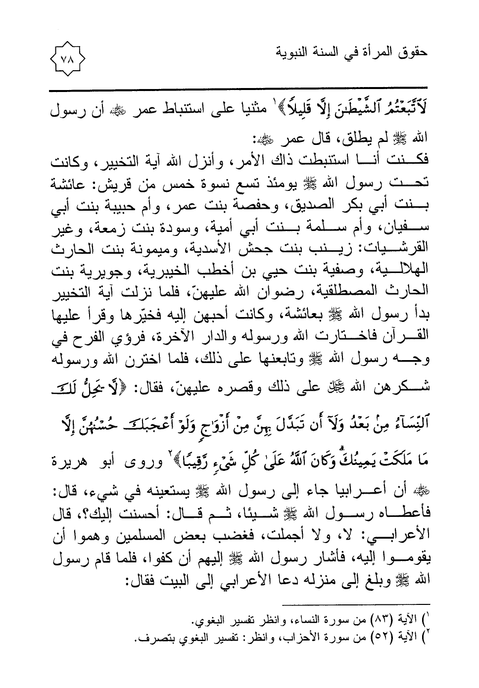 (¬2) الآية (52) من سورة الأحزاب، وانظر: تفسير البغوي بتصرف.